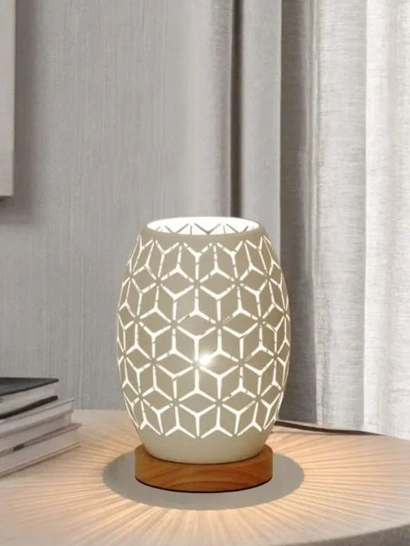 We've been moving this lamp around our space quite a bit, and it's proven surprisingly adaptable. The geometrical design works equally well on a bedside table as it does on a desk or living room side table. We found the wooden base stable enough for various surfaces, though it's worth noting the lamp is best suited for smaller spaces rather than illuminating entire rooms.